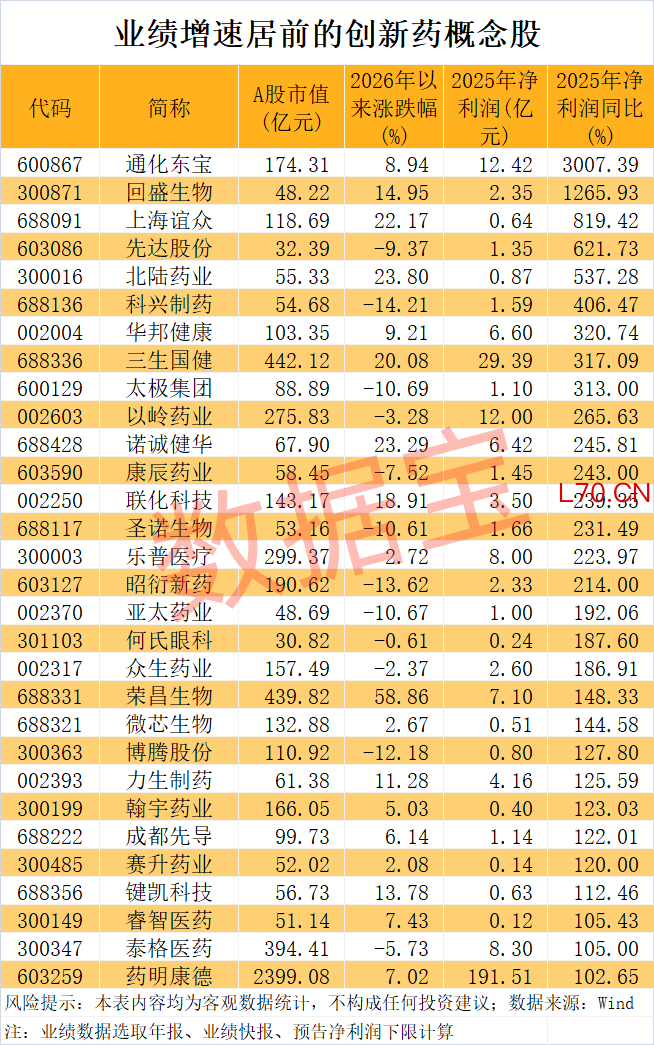 2025年业绩陆续出炉,多只创新药概念股交出业绩高增长的答卷。
