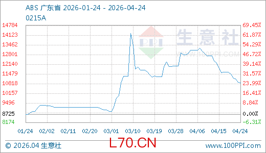 据生意社监测,ABS04月24日最新价格10883.33元/吨,最近60天上涨18.38%,90天上涨24.74%。