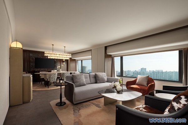 不同房型各有特色,部分房间内将1983年动工仪式的原始石材被打造成艺术品,连接起1983与2026的时光对话;备餐区从专用通道服务,不打扰宾客,全套烹饪设备还能满足家庭客人的轻烹饪需求。豪华套房的三段式隔断,实现了活动、睡眠、洗漱区的私密分离。高级豪华大床房放大了卫生间空间,浴缸临窗可赏城市夜景。此外,酒店还有三个主题房型,房间内配有运动单车、跑步机、魔镜,让宾客足不出户即可锻炼。所有客房均配备智能客控系统、基础智能睡眠设备及完善的卫浴设施,兼顾居住舒适度与实际使用需求。