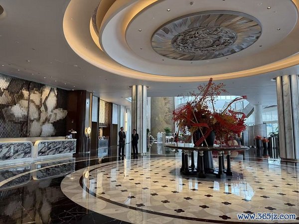 炒股网站步入焕新后的华亭宾馆大堂,历史与现代的交融感扑面而来。艺术品《华亭春早》以金属打造上海白玉兰盛放之景,不同角度光影变幻,呼应着改革开放的蓬勃生机与新华亭的重生。头顶的“飞天音乐舞蹈”浮雕作为原馆珍藏被完整保留,八位仙女的飘逸丝带与建筑外立面呼应,敦煌元素与海派文化交融;浮雕下方的花艺设计延续飞天灵动之美,地面镌刻的梅花与铜钱传统纹样,诠释中式理念。