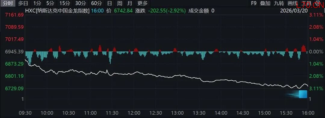 中概股方面,纳斯达克中国金龙指数收跌2.92%。金山云跌超9%,小鹏汽车跌超8%,蔚来跌超7%,万国数据跌超7%,禾赛跌超6%,哔哩哔哩跌超4%。