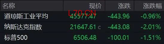 美股三大指数集体收跌,道指跌0.96%,纳指跌2.01%,标普500指数跌1.51%。