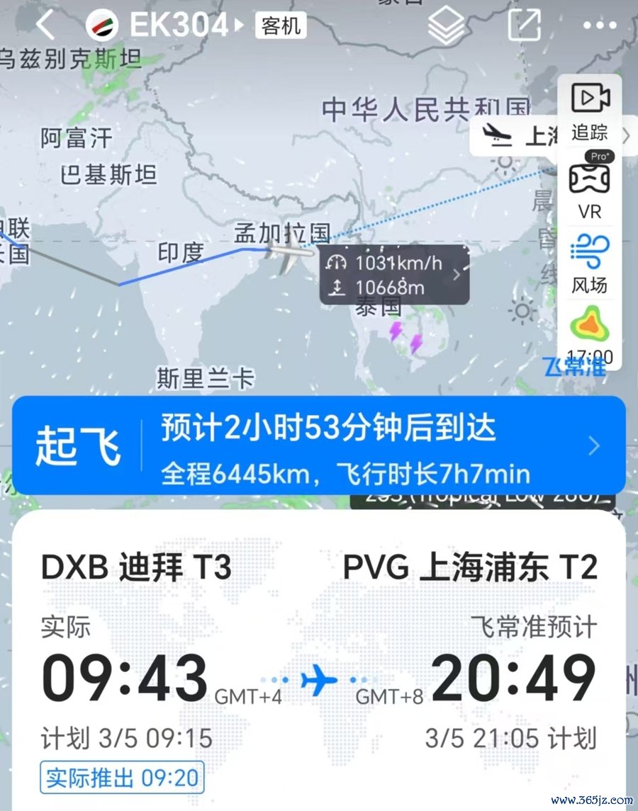 值得一提的是,当地时间3月5日9时43分,阿联酋航空飞上海浦东的EK304航班从迪拜国际机场顺利起飞,成为迪拜机场恢复运营后首架飞往上海的商业航班。该航班将于北京时间3月5日晚抵沪。