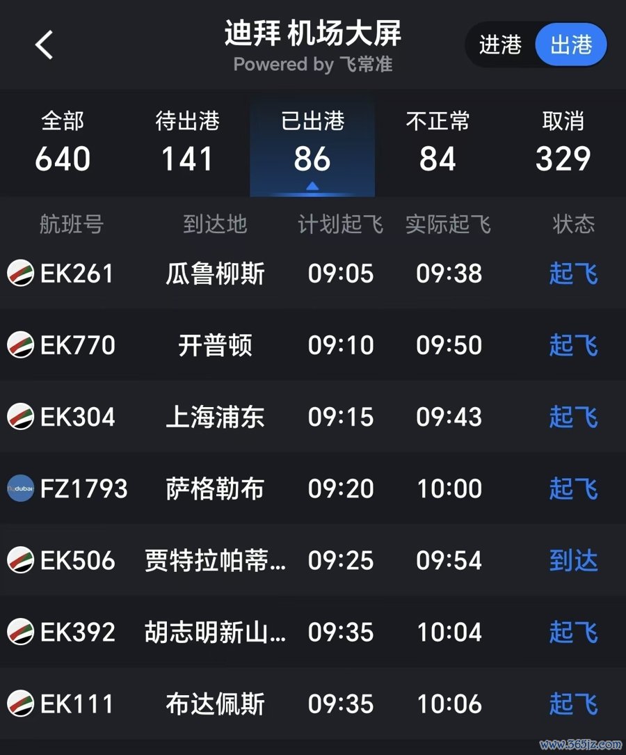 迪拜机场当天航班量明显高于前一天,截至北京时间3月5日18时30分,该机场已有86个航班出港,是3月4日同时间段的两倍多。