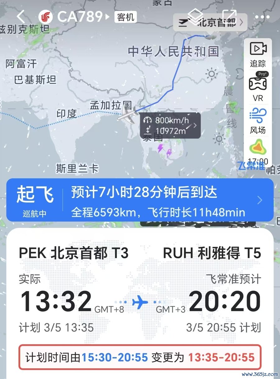 3月5日的国航北京飞利雅得的CA789航班。