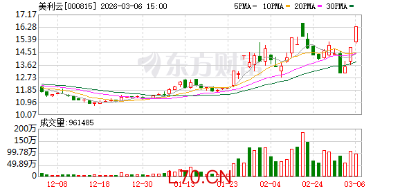证券日报网讯 3月8日,美利云发布公告称,公司股票交易价格连续三个交易日(3月4日、3月5日、3月6日)收盘价格涨幅偏离值累计超过20%,根据深圳证券交易所的有关规定,属于股票交易异常波动的情况。本公司董事会确认,本公司目前没有任何根据深交所《股票上市规则》等有关规定应予以披露而未披露的事项或与该事项有关的筹划、商谈、意向、协议等;董事会也未获悉本公司有根据深交所《股票上市规则》等有关规定应予以披露而未披露的、对本公司股票及其衍生品种交易价格产生较大影响的信息;公司前期披露的信息不存在需要更正、补充之处。