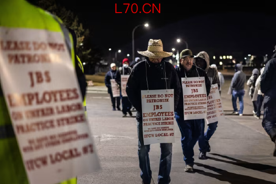 JBS 位于科罗拉多州格里利的一家关键牛肉加工厂工人于周一举行罢工,在牛肉价格创下历史新高之际抑制了生产。